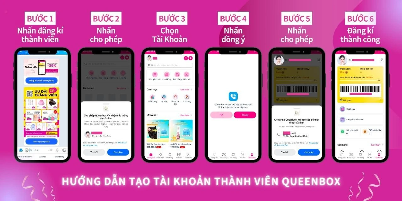 Chương trình “Mua sắm giá thành viên” là chương trình mang đến những ưu đãi và những quyền lợi đặc biệt dành riêng cho khách hàng thân thiết khi mua sản phẩm tại Zalo Mini App Queenbox Viet Nam. Tài khoản thành viên được quản lý và cập nhật theo số điện thoại.