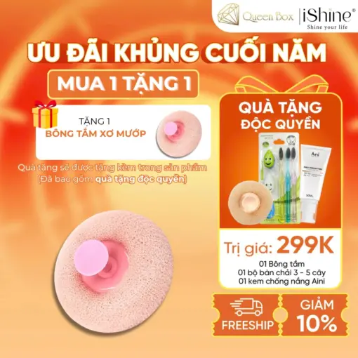 Bông tắm iShine xơ mướp tạo bọt làm sạch cơ thể, tẩy da chết, massage dịu nhẹ