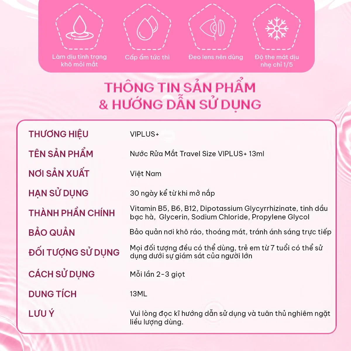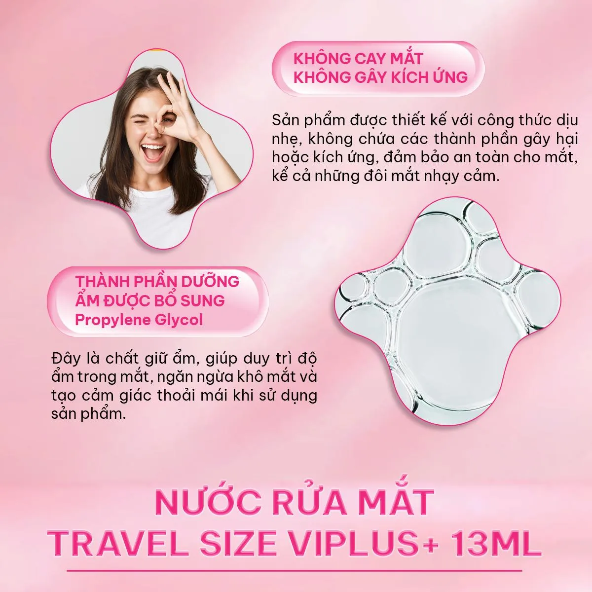 Nước Rửa Mắt Travel Size VIPLUS+ 13ml Extra – Sản phẩm lý tưởng cho đôi mắt khỏe đẹp mỗi ngày.