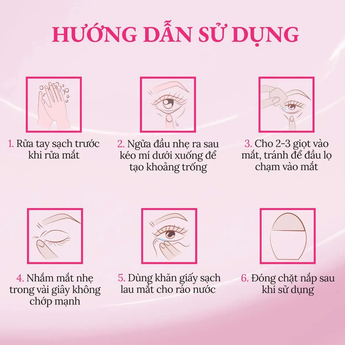 - Axit Boric & Sodium Borate: Hỗ trợ kháng khuẩn, làm sạch hiệu quả, cân bằng độ pH cho mắt.