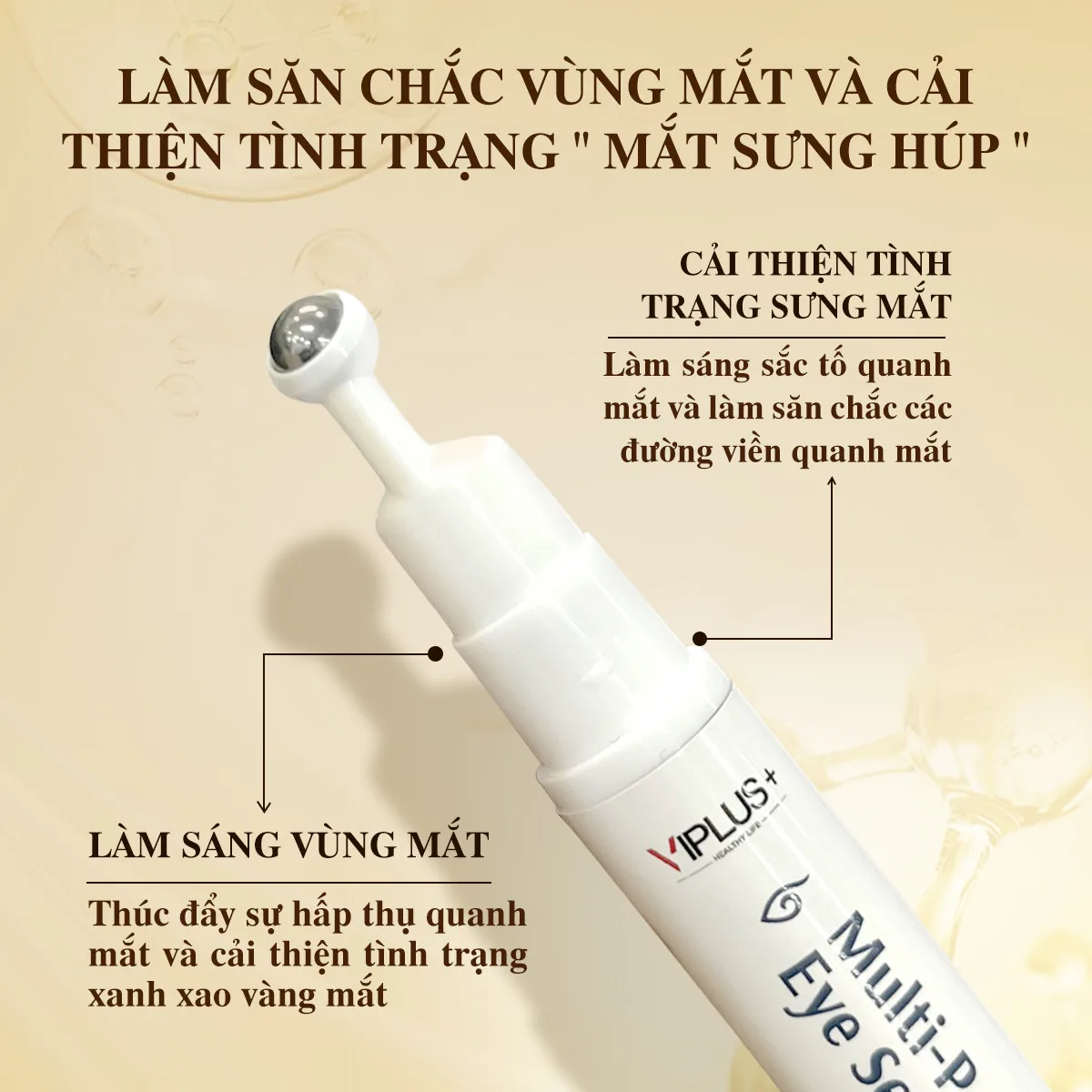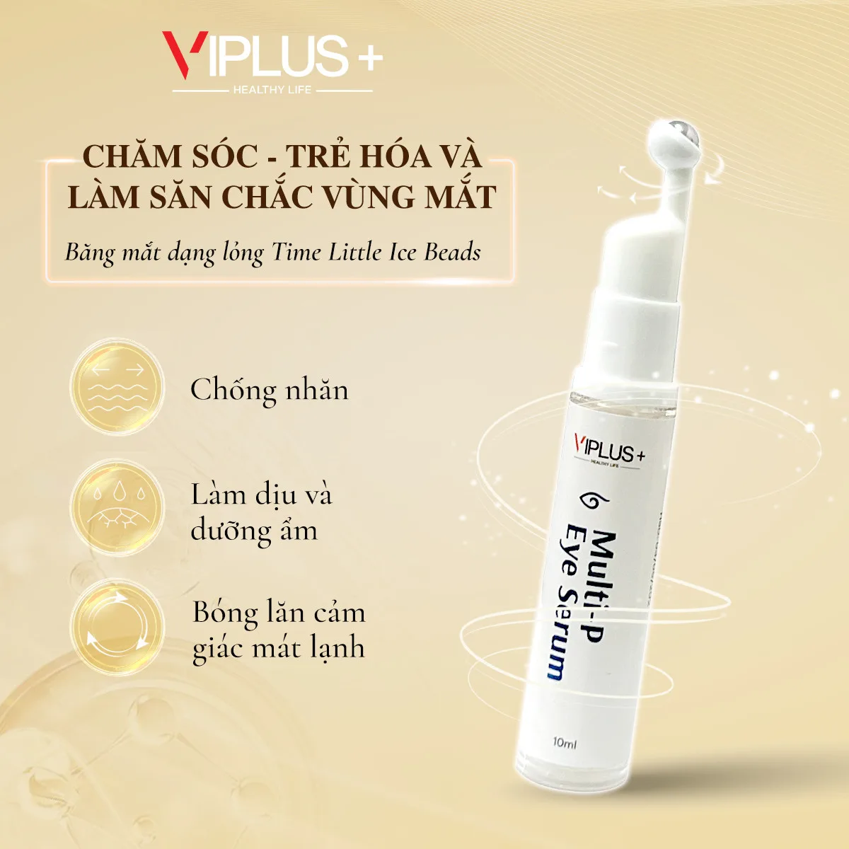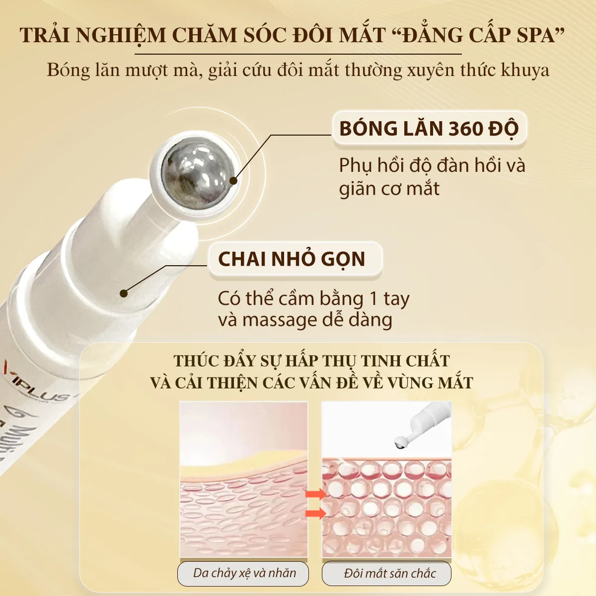 - Tinh Chất Lăn Mắt Viplus+ là sản phẩm chăm sóc vùng da mắt cao cấp, được thiết kế đặc biệt để giảm thiểu các dấu hiệu lão hóa và mệt mỏi. Với thành phần chính là Phức hợp Tripeptide và chiết xuất tảo, sản phẩm mang lại hiệu quả vượt trội trong việc làm mờ quầng thâm, giảm bọng mắt và mang lại làn da tươi trẻ, rạng rỡ.