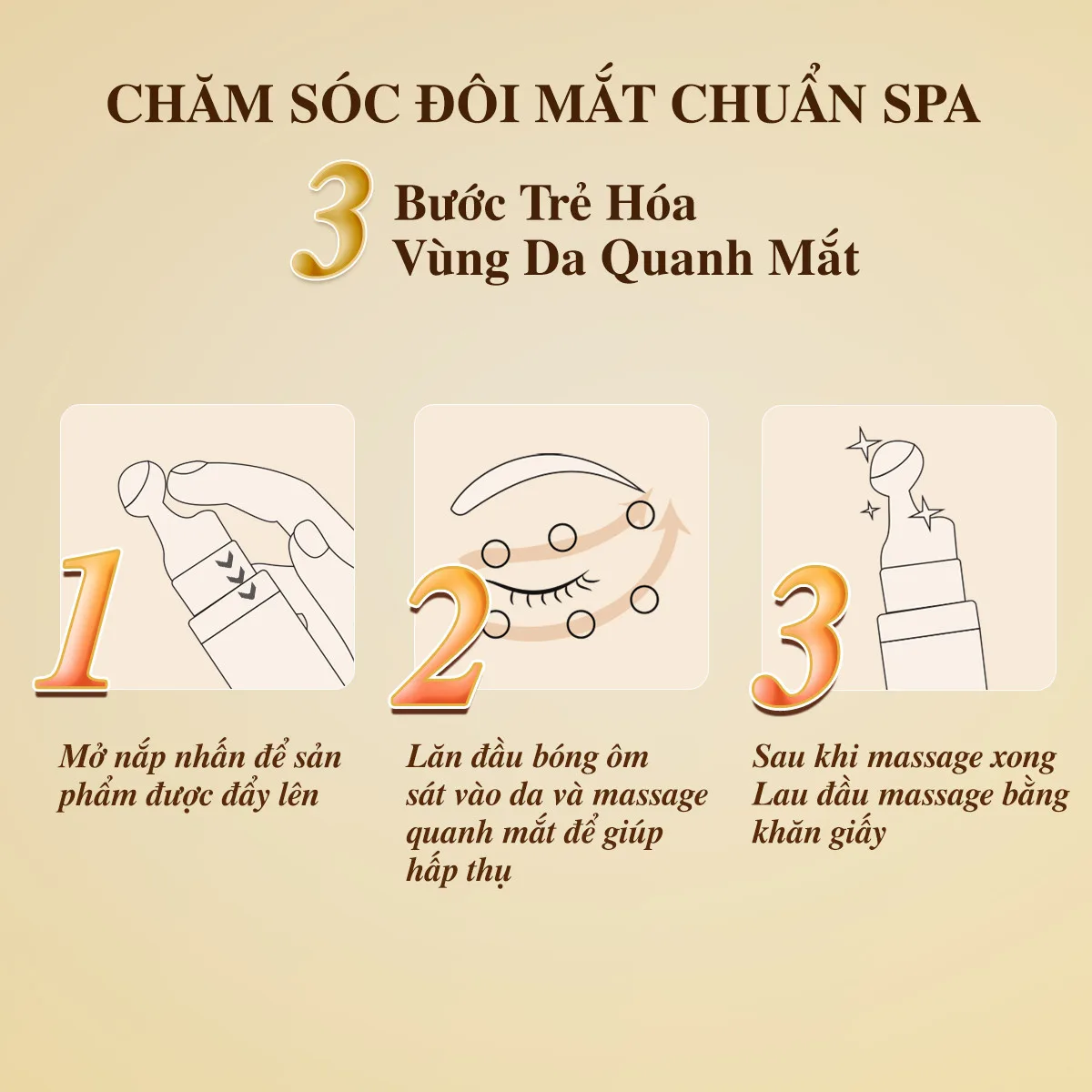 - Lăn nhẹ nhàng tinh chất quanh vùng mắt theo chuyển động tròn.